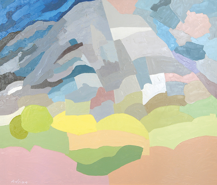 Mount Tamalpais, Etel Adnan, 1985, oil on canvas, 130 x 150 cm. Image courtesy the artist and Sursock Museum Collection, Berlin.
