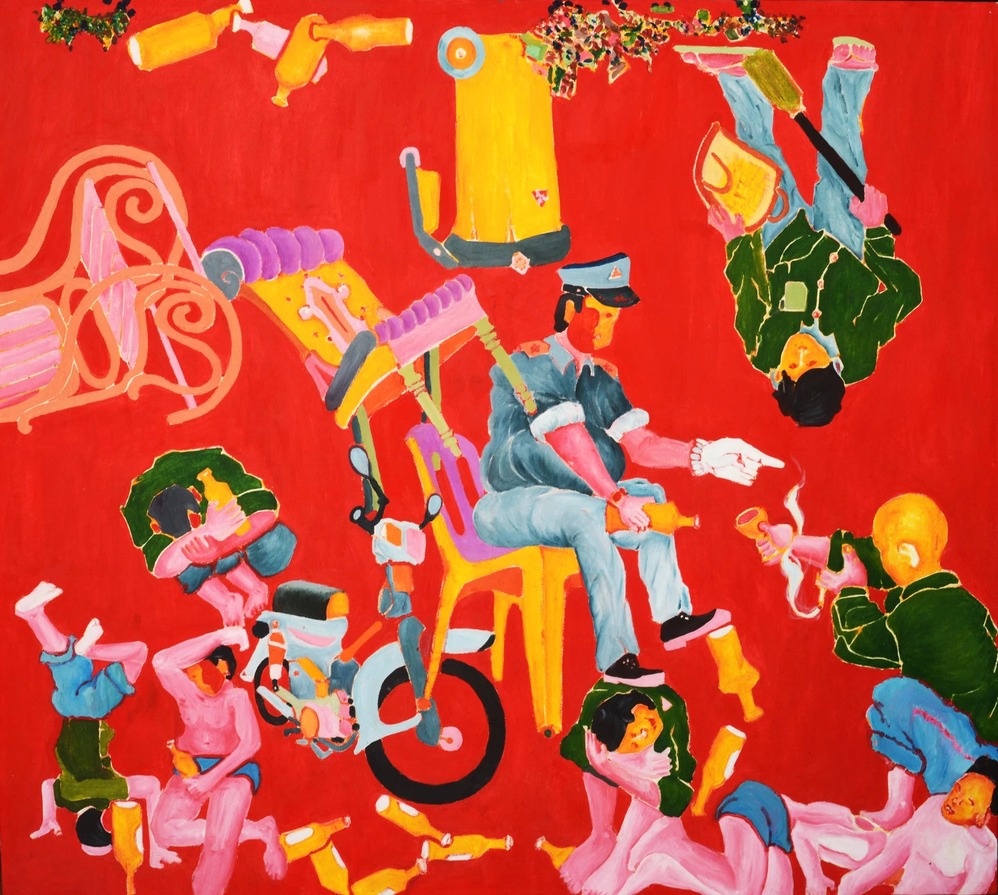 Meas “Inverted Sewer” series explores Cambodia’s class conflict and power imbalances through traffic troubles. The ubiquitousness of traffic is highlighted through Meas’ bold use of colour and thoughtful composition, forcing the viewer to pause over questions, figures and practices that might otherwise go unnoticed in the thrum of daily life.