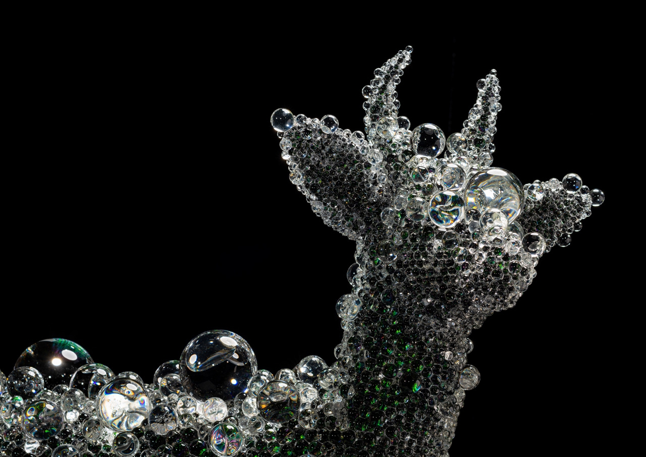 The works of Japanese artist Kohei Nawa interrogate the relationships between nature and artificiality, spirituality and the digital realm — bridging these disparate worlds together in his multidisciplinary practice. He is best known for his PixCell series, in which he covers objects such as taxidermied deer with a layer of glass beads, prisms, and other delicate materials. The natural world is not so much transfigured as revealed to be ethereal, disassembling rigid perceptions of reality. Nawa is a rising star in the Japanese art market, with his work even collected by the K-pop idol T.O.P.