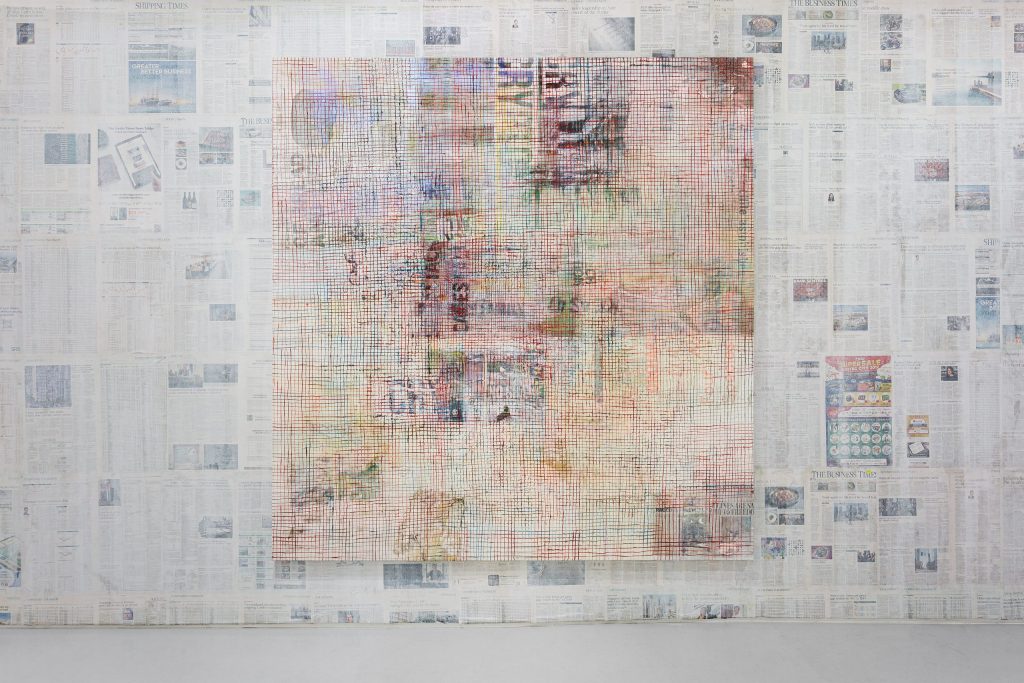 It’s hard to miss a work when it extends beyond the canvas and spreads across an entire wall. Meticulously layering newspapers, fabric, and materials such as rubber and clay, El-Sayegh uses fragments of found text and grids to question typically undisputed knowledge structures, and reconstruct new systems of order. Within this dense display, El-Sayegh incorporates hints of her personal history: latex because her mother was a rubber tapper in Pahang, Malaysia; Arabic words in homage to her father, who was a calligrapher for the Sultan. The artist is more than just an archivist, as she stretches the detritus of her family into cultural and political spheres.