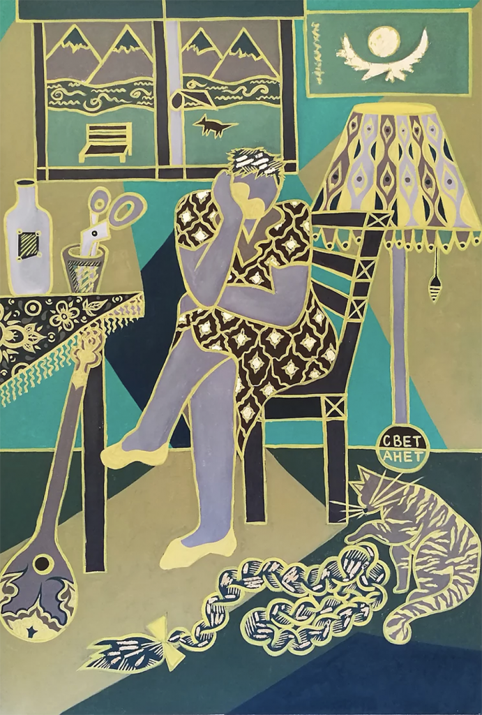 Aziza Shadenova, Woman in the Dark, oil and gold leaf on canvas, 150 x 100 cm, 2017. Image courtesy of Qazart.