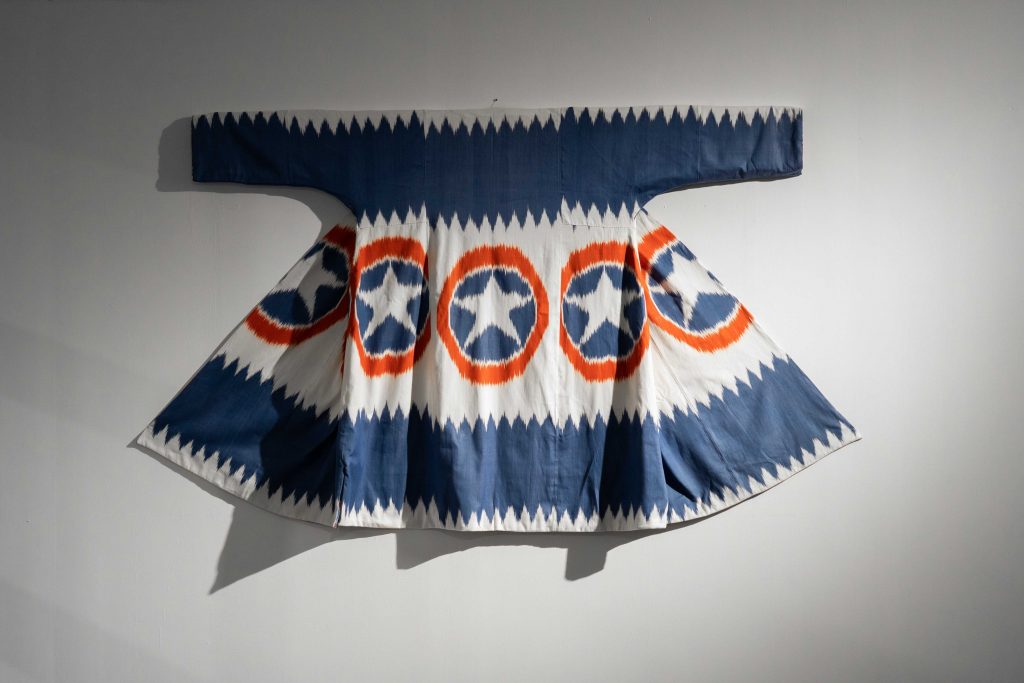 Dilyara Kaipova, Captain America, Chapan, textile, 123 x 207 cm, 2016. Image courtesy of Aspan Gallery.