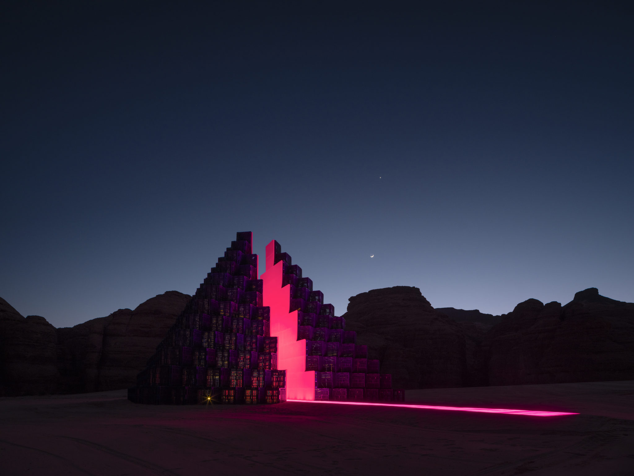 Installation view of A Concise Passage, Rashed Al Shashai, in Al Ula, Saudi Arabia. Image courtesy of Lance Gerber, the artist, RCU and Desert X.