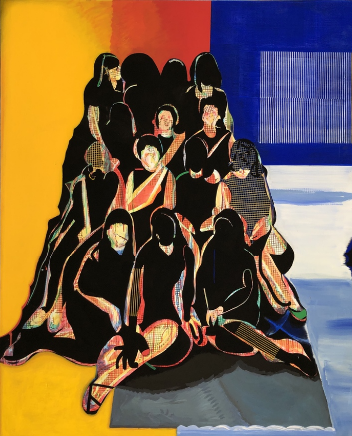 Rays, Taha Heydari, 2021, acrylic on canvas, 165.1 x 132.1 cm. Image courtesy of Haines Gallery.