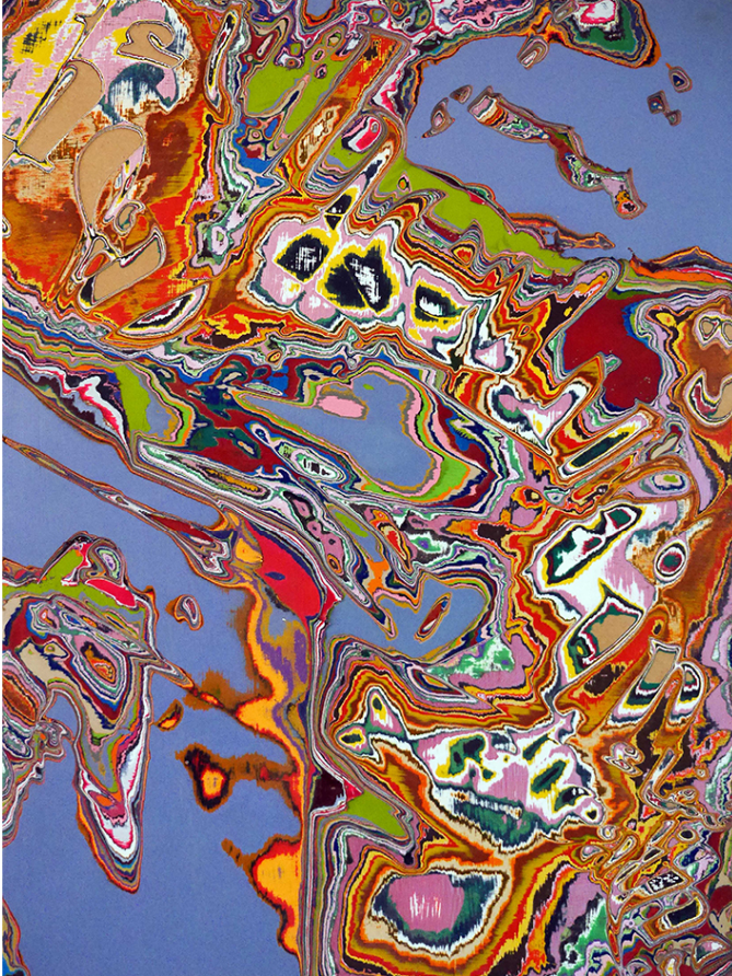 Iranian Taha Heydari’s works look at the power of the image in contemporary political narratives. His large-scale canvases, with fragmentary aesthetics and minutely-detailed brushstrokes, interrogate prejudice and propaganda in both the United States and the Middle East.