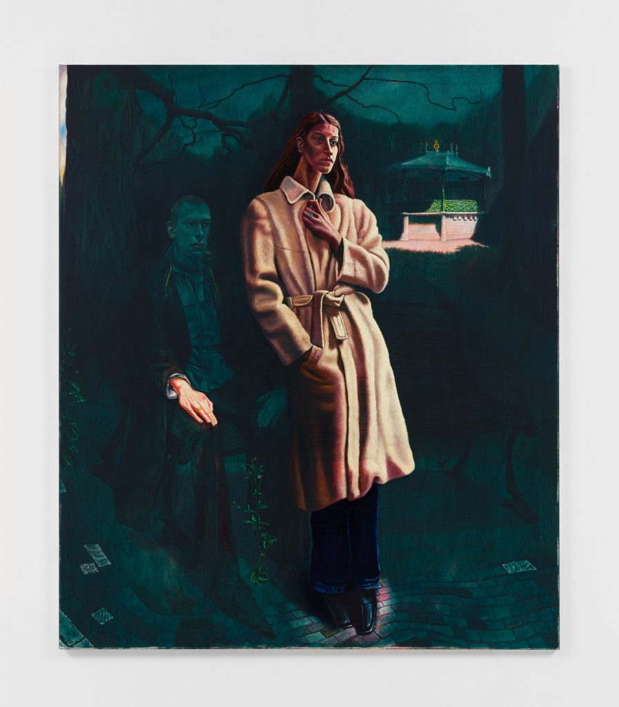 We walk deeper into the uncanny with the work of millennial Eyckermans, who was born in Belgium in 1996. Coming from five generations of sculptors, Eyckermans’ work is distinctly contemporary, yet is weighted by a lingering spectre. Vivid illumination sculpts certain figures in the painting out of the darkness. What would otherwise have been a straightforward narrative is disrupted by the varying depths of colour and light, hinting at a deeper story, something running beneath the surface.