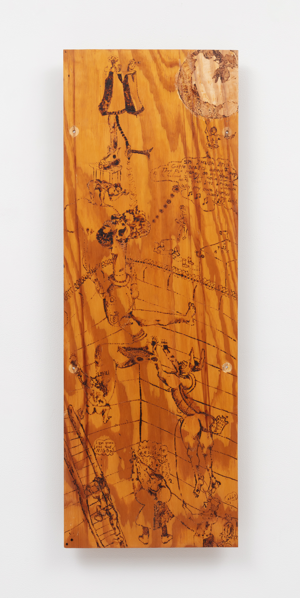 We end with the youngest artist on our list, born in 1997 in New York City. Desir’s works mine the personal, the history of the diaspora, symbolism and Abrahamic narrative, culminating in energetic pieces that vibrate with history. The physicality of wood explores the intergenerational nature of Abrahmic belief and the diaspora, referencing through its burn marks and fissures the struggles passed from generation to generation. Yet it is the warmth of the same material that provides a semblance of hope and home, drawing deliverance out of the darkness.