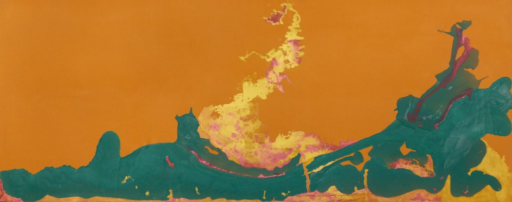 Inkanyamba (Zulu for snake), makes use of Siwani’s (b. 1987) characteristic material — sunlight soap. The soap’s vivid green hue brings to mind the artist’s South African heritage; the specific soap is a popular fixture in the country. The material is a reference to the idea of the Black body as something that is “dirty”, yet this is a notion subverted by the painting’s vigour, in which colour is its highlight, something vibrant and celebratory.